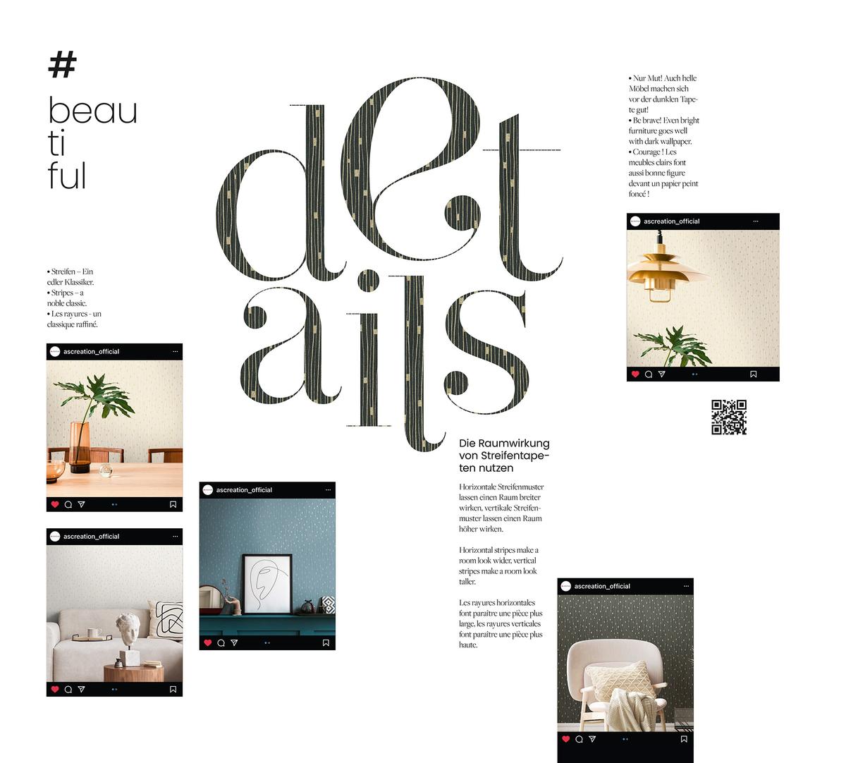 Inspired by global design trends and timeless aesthetics, A.S. Création develops coordinated collections that make it easy to create harmonious, expressive interiors – whether modern, minimalist, or richly decorative.Sustainability & Responsibility