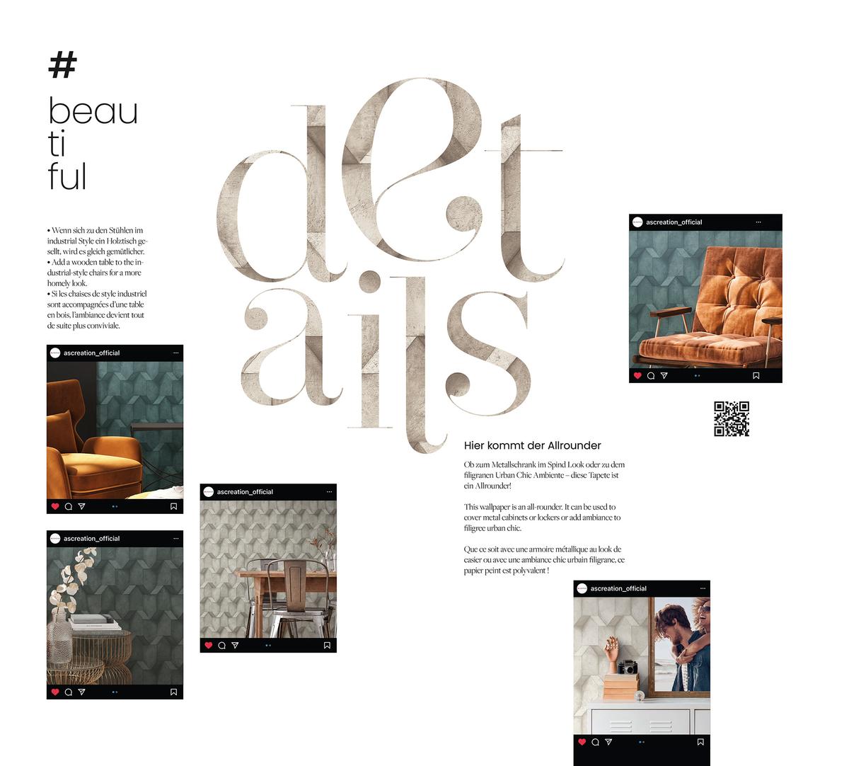Inspired by global design trends and timeless aesthetics, A.S. Création develops coordinated collections that make it easy to create harmonious, expressive interiors – whether modern, minimalist, or richly decorative.Sustainability & Responsibility